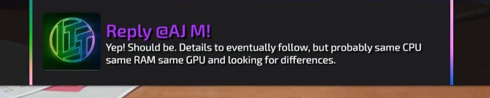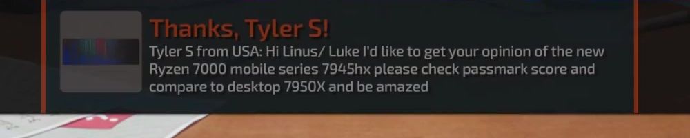Tyler S from USA: Hi Linus/ Luke I'd like to get your opinion of the new Ryzen 7000 mobile series 7945hx please check passmark score and compare to desktop 7950X and be amazed