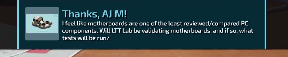 I feel like motherboards are one of the least reviewed/compared PC components. Will LTT Lab be validating motherboards, and if so, what tests will be run?