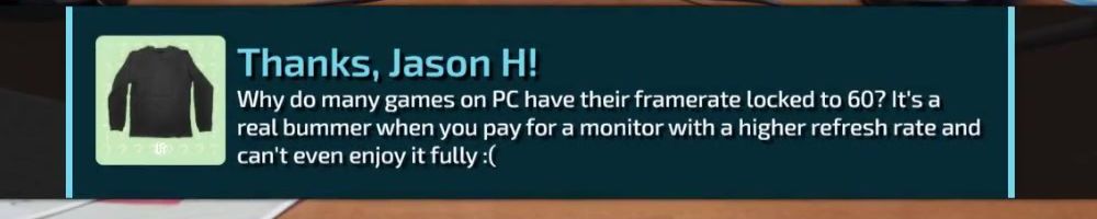 Why do many games on PC have their framerate locked to 60? It's a real bummer when you pay for a monitor with a higher refresh rate and can't even enjoy it fully :(
