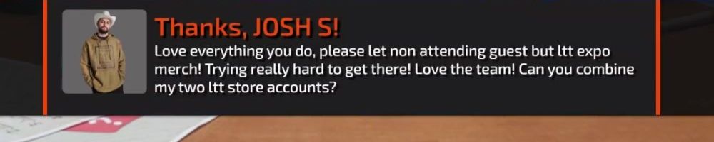 Love everything you do, please let non attending guest but ltt expo merch! Trying really hard to get there! Love the team! Can you combine my two ltt store accounts?