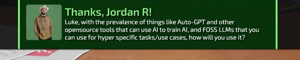 Luke, with the prevalence of things like Auto-GPT and other opensource tools that can use AI to train AI, and FOSS LLMs that you can use for hyper specific tasks/use cases, how will you use it?