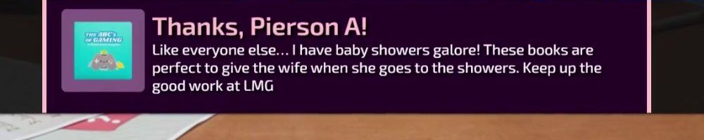 Like everyone else... I have baby showers galore! These books are perfect to give the wife when she goes to the showers. Keep up the good work at LMG