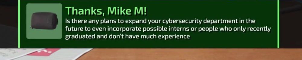 Is there any plans to expand your cybersecurity department in the future to even incorporate possible interns or people who only recently graduated and don't have much experience