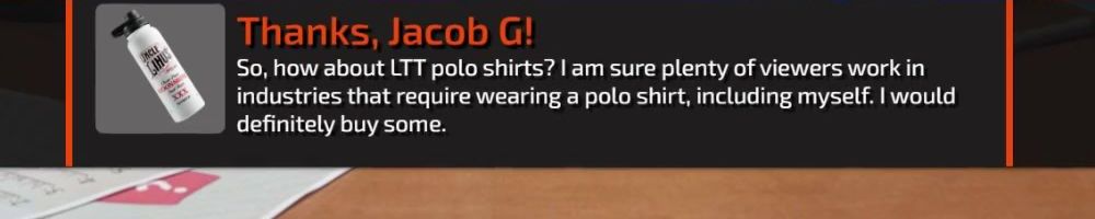 So, how about LTT polo shirts? I am sure plenty of viewers work in industries that require wearing a polo shirt, including myself. I would definitely buy some.