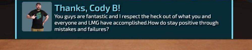 You guys are fantastic and I respect the heck out of what you and everyone and LMG have accomplished. How do you stay positive through mistakes and failures?