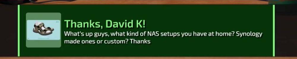 Thanks, David K! What's up guys, what kind of NAS setups you have at home? Synology made ones or custom? Thanks