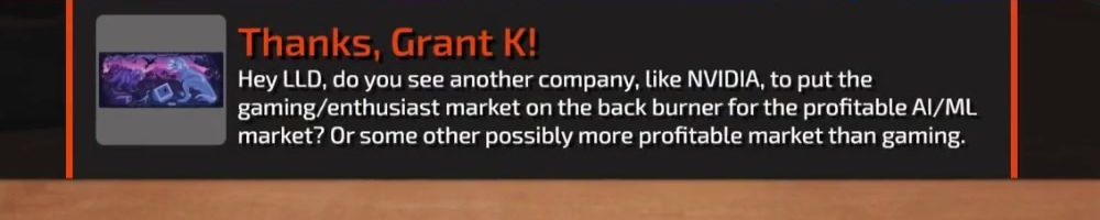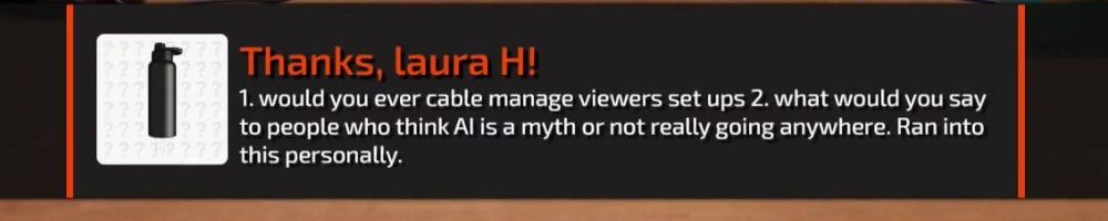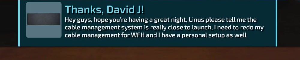 Thanks, David J! Hey guys, hope you're having a great night, Linus please tell me the cable management system is really close to launch, I need to redo my cable management for WFH and I have a personal setup as well