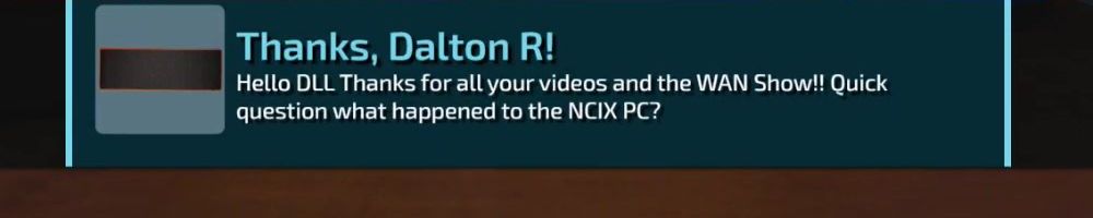 Thanks, Dalton R! Hello DLL Thanks for all your videos and the WAN Show!! Quick question what happened to the NCIX PC?