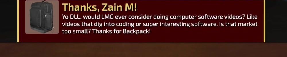 Thanks, Zain M! Yo DLL, would LMG ever consider doing computer software videos? Like videos that dig into coding or super interesting software. Is that market too small? Thanks for Backpack!