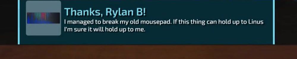Thanks, Rylan B! I managed to break my old mousepad. If this thing can hold up to Linus I'm sure it will hold up to me.