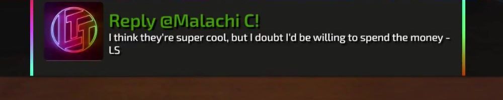 Reply @Malachi C! I think they're super cool, but I doubt I'd be willing to spend the money - LS