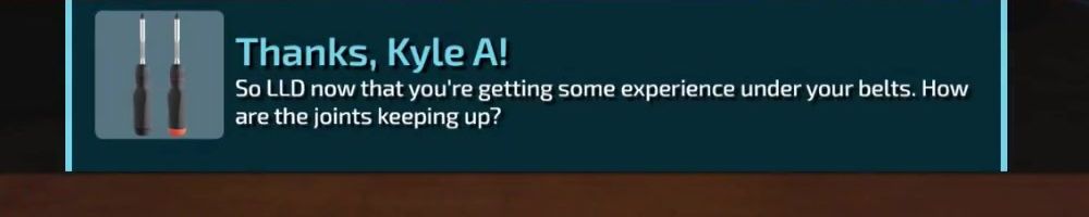 Thanks, Kyle A! So LLD now that you're getting some experience under your belts. How are the joints keeping up?