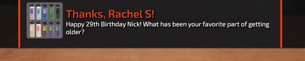 Thanks, Rachel S! Happy 29th Birthday Nick! What has been your favorite part of getting older?