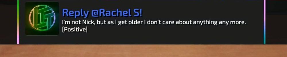 Reply @Rachel S! I'm not Nick, but as I get older I don't care about anything any more. [Positive]