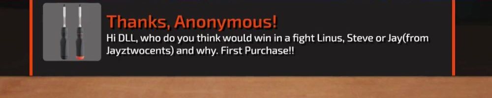 Thanks, Anonymous! Hi DLL, who do you think would win in a fight Linus, Steve or Jay(from Jayztwocents) and why. First Purchase!!
