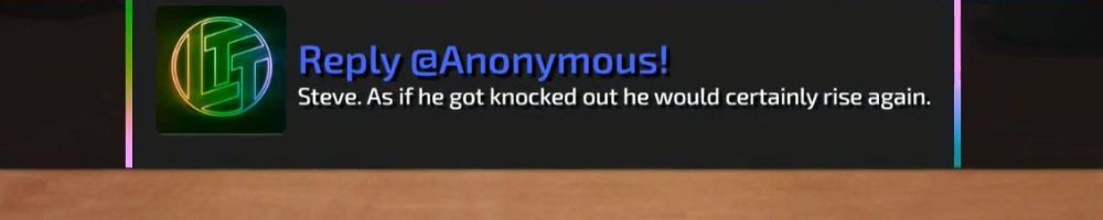 Reply @Anonymous! Steve. As if he got knocked out he would certainly rise again.