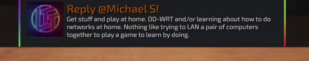 Reply @Michael S! Get stuff and play at home. DD-WRT and/or learning about how to do networks at home. Nothing like trying to LAN a pair of computers together to play a game to learn by doing.