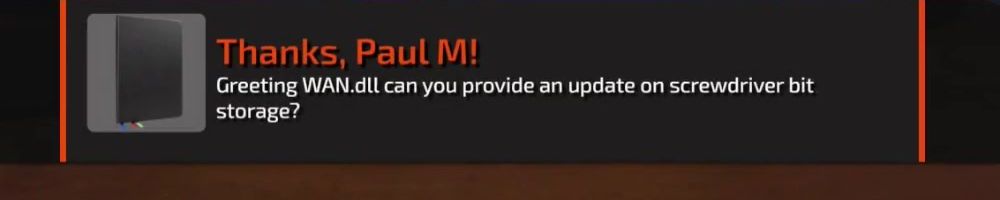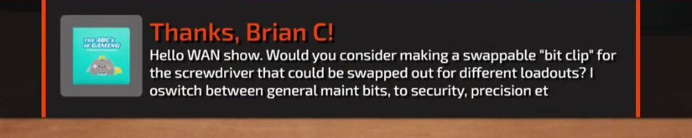 Thanks, Brian C! Hello WAN show. Would you consider making a swappable "bit clip" for the screwdriver that could be swapped out for different loadouts? I oswitch between general maint bits, to security, precision et