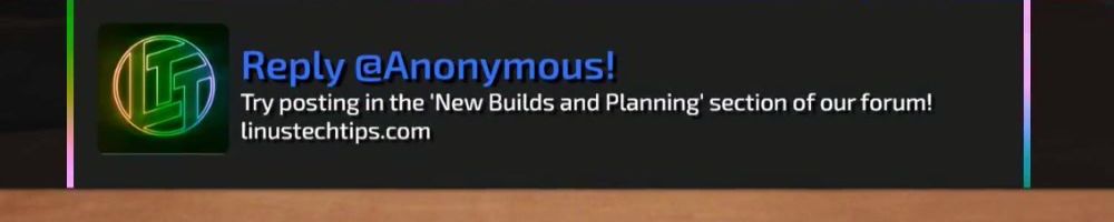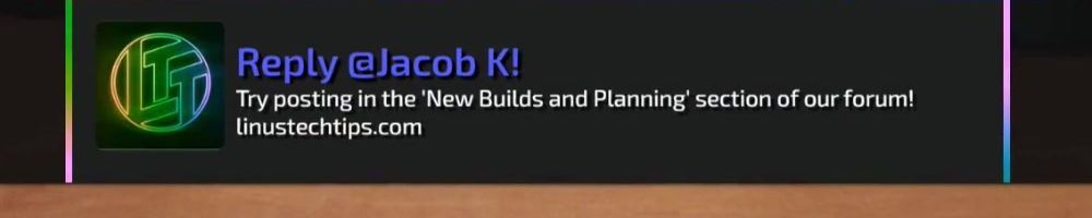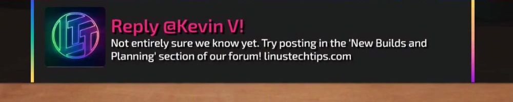 Reply @Jacob K! Try posting in the ‘New Builds and Planning’ section of our forum! linustechtips.com
