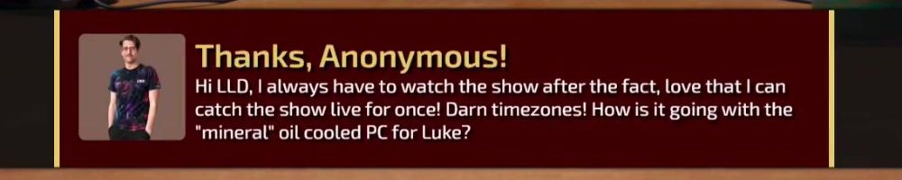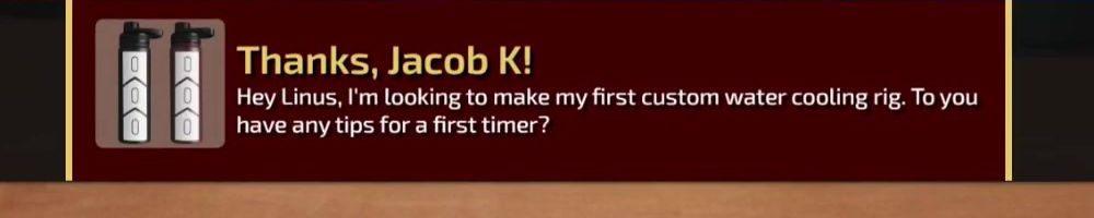 Thanks, Jacob K! Hey Linus, I'm looking to make my first custom water cooling rig. To you have any tips for a first timer?