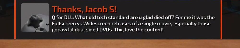 Q for DLL: What old tech standard are u glad died off? For me it was the Fullscreen vs Widescreen releases of a single movie, especially those godawful dual sided DVDs. Thx, love the content!