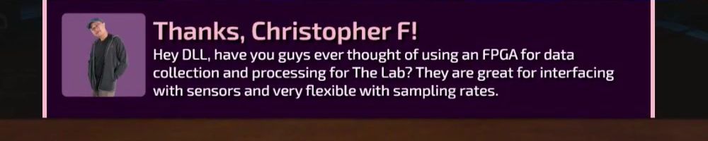 Hey DLL, have you guys ever thought of using an FPGA for data collection and processing for The Lab? They are great for interfacing with sensors and very flexible with sampling rates.