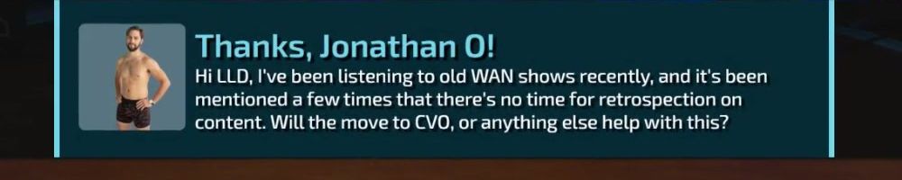 Hi LLD, I've been listening to old WAN shows recently, and it's been mentioned a few times that there's no time for retrospection on content. Will the move to CVO, or anything else help with this?