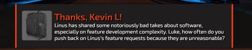 Linus has shared some notoriously bad takes about software, especially on feature development complexity. Luke, how often do you push back on Linus's feature requests because they are unreasonable?