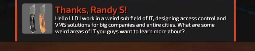Hello LLD I work in a weird sub field of IT, designing access control and VMS solutions for big companies and entire cities. What are some weird areas of IT you guys want to learn more about?