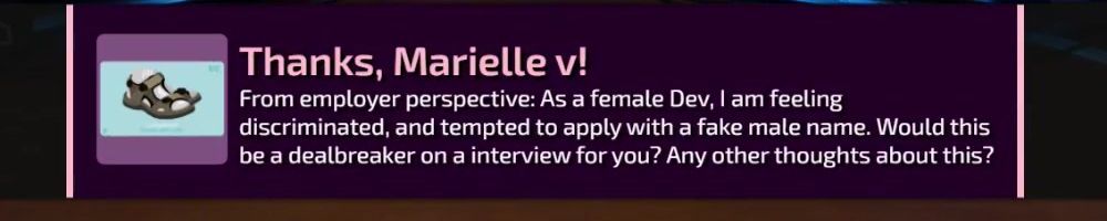 From employer perspective: As a female Dev, I am feeling discriminated, and tempted to apply with a fake male name. Would this be a dealbreaker on a interview for you? Any other thoughts about this?