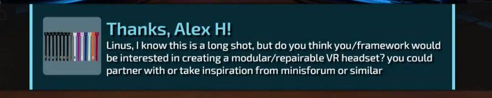 Linus, I know this is a long shot, but do you think you/framework would be interested in creating a modular/repairable VR headset? you could partner with or take inspiration from minisforum or similar
