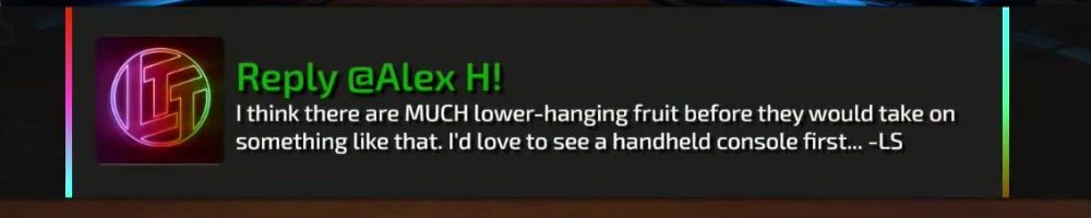 something like that. I'd love to see a handheld console first... -LS