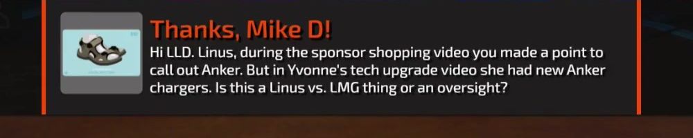 Hi LLD. Linus, during the sponsor shopping video you made a point to call out Anker. But in Yvonne's tech upgrade video she had new Anker chargers. Is this a Linus vs. LMG thing or an oversight?