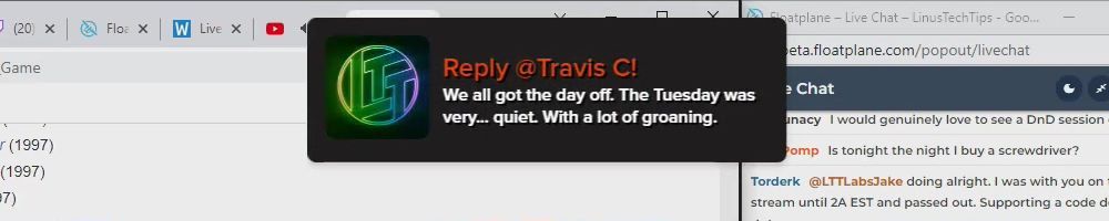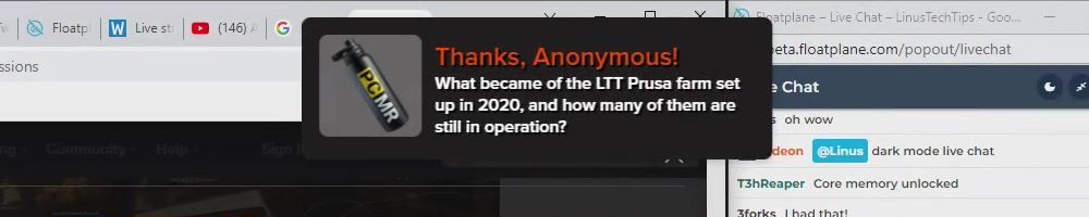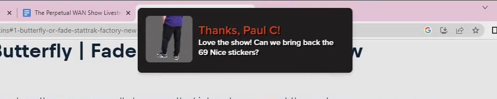 Hint: Use CTRL + F to search messages in this show, or use Whenplane's WAN Show Search tool to search for messages in all shows.