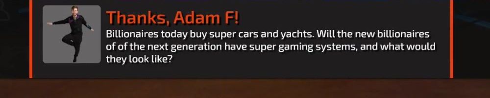 Billionaires today buy super cars and yachts. Will the new billionaires of of the next generation have super gaming systems, and what would they look like?