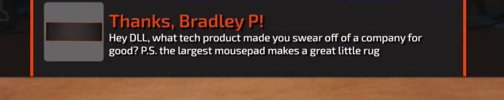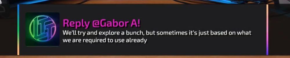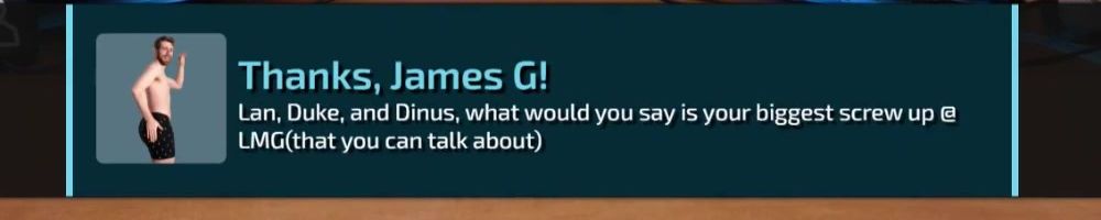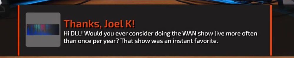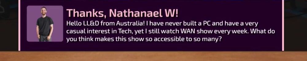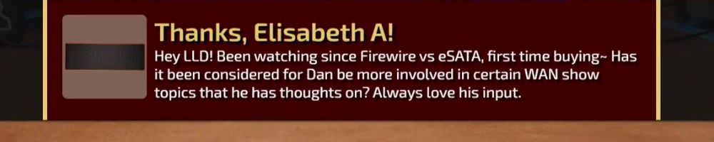 Hey LLD! Been watching since Firewire vs eSATA, first time buying~ Has it been considered for Dan be more involved in certain WAN show topics that he has thoughts on? Always love his input.