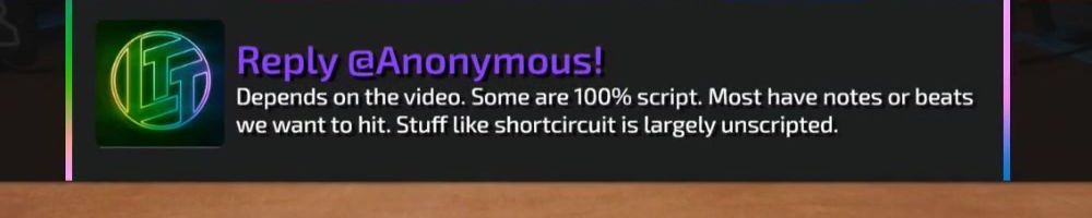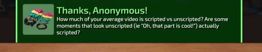 How much of your average video is scripted vs unscripted? Are some moments that look unscripted (ie "Oh, that part is cool!") actually scripted?