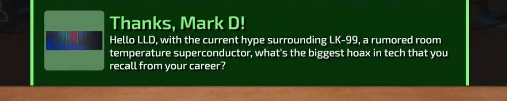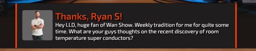 Hey LLD, huge fan of Wan Show. Weekly tradition for me for quite some time. What are your guys thoughts on the recent discovery of room temperature super conductors?