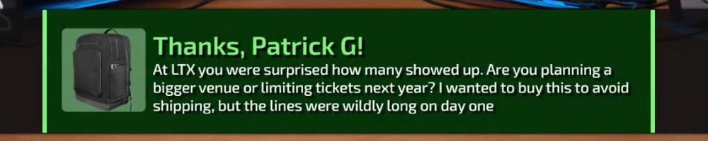At LTX you were surprised how many showed up. Are you planning a bigger venue or limiting tickets next year? I wanted to buy this to avoid shipping, but the lines were wildly long on day one