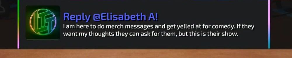 I am here to do merch messages and get yelled at for comedy. If they want my thoughts they can ask for them, but this is their show.