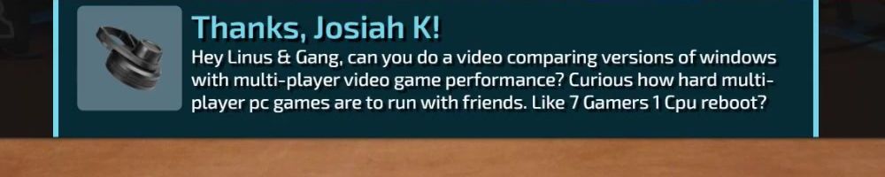 Hey Linus & Gang, can you do a video comparing versions of windows with multi-player video game performance? Curious how hard multi-player pc games are to run with friends. Like 7 Gamers 1 Cpu reboot?