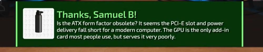 Is the ATX form factor obsolete? It seems the PCI-E slot and power delivery fall short for a modern computer. The GPU is the only add-in card most people use, but serves it very poorly.