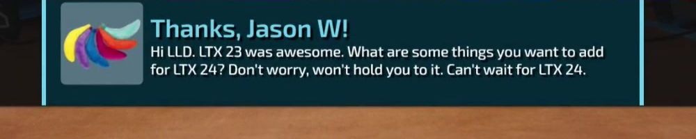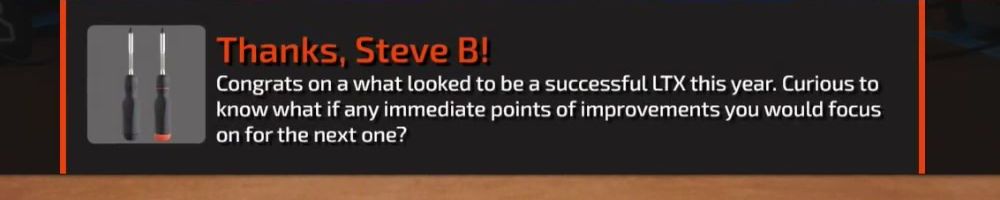 Congrats on a what looked to be a successful LTX this year. Curious to know what if any immediate points of improvements you would focus on for the next one?