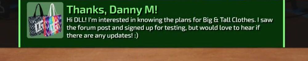 Hey DLL! Long time fan and Big/Tall Boi. No extended sizing has been