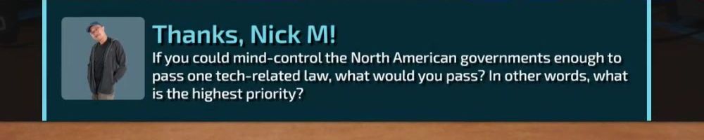 pass one tech-related law, what would you pass? In other words, what