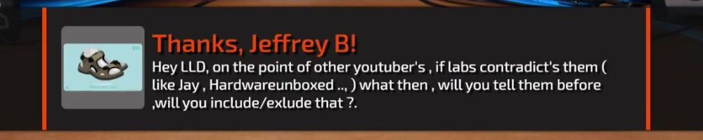 Hey LLD, on the point of other youtuber's , if labs contradict's them ( like Jay , Hardwareunboxed .., ) what then , will you tell them before ,will you include/exlude that ?.