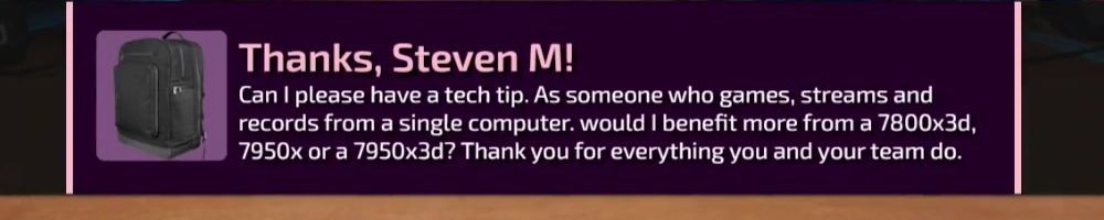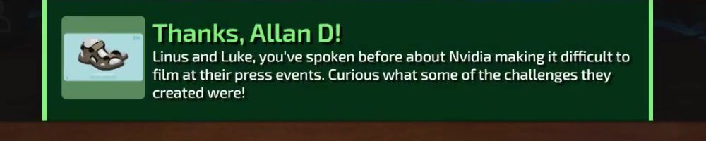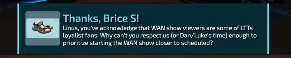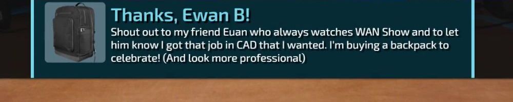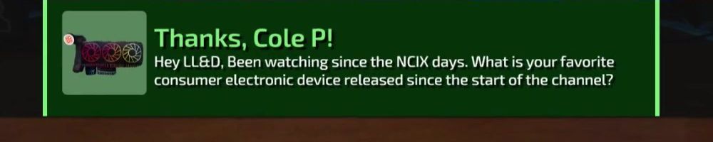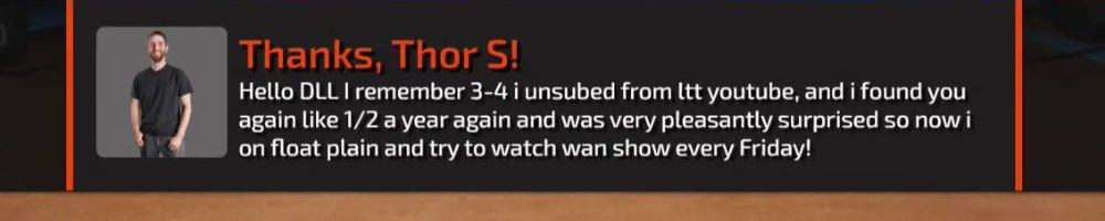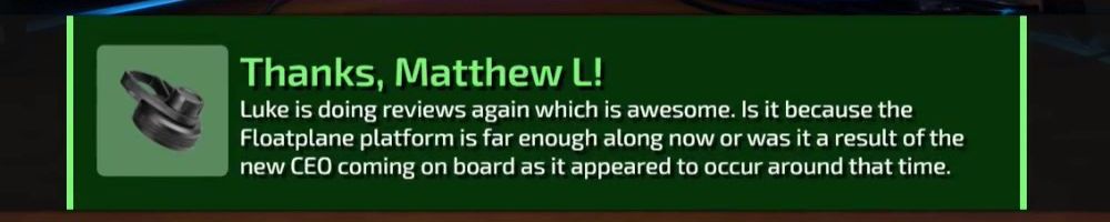 Thanks, Matthew L! Luke is doing reviews again which is awesome. Is it because the Floatplane platform is far enough along now or was it a result of the new CEO coming on board as it appeared to occur around that time.