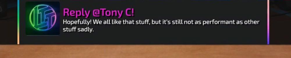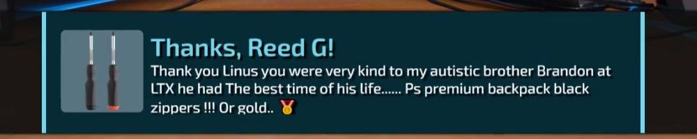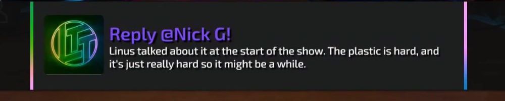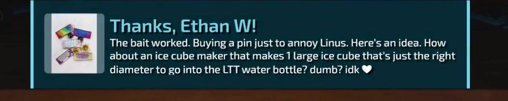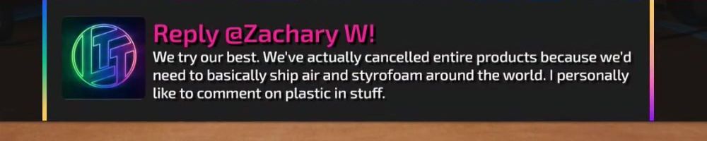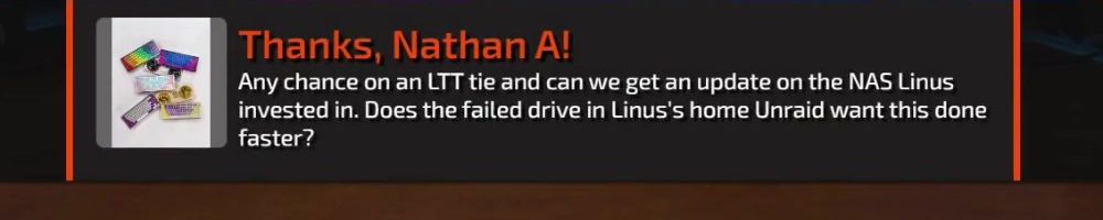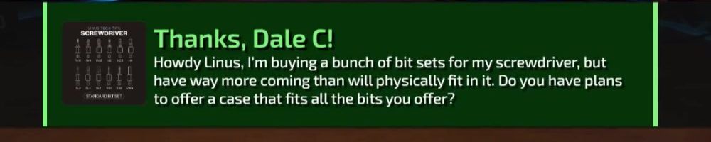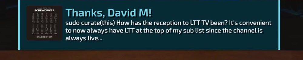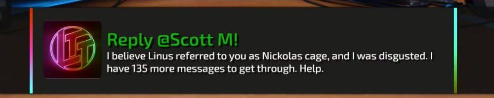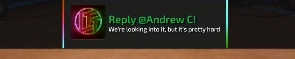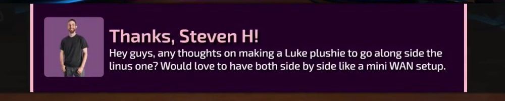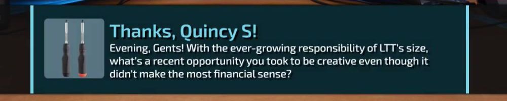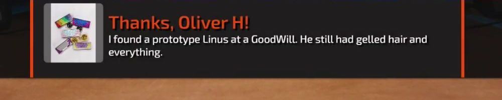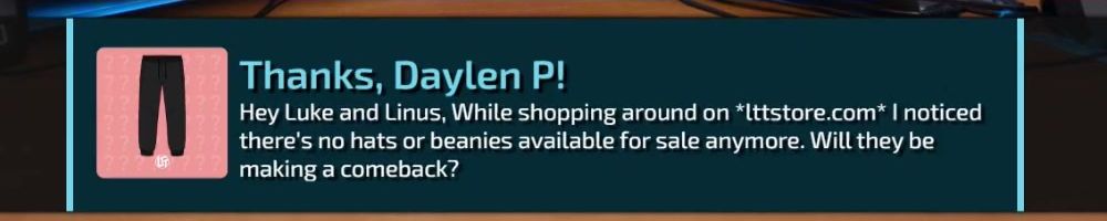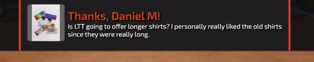 Thanks, Nick F! Hey dl, have you guys ever considered bringing back limited merch from before lttstore? I'd love to get a new tech linked tape shirt!