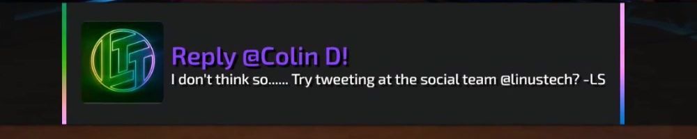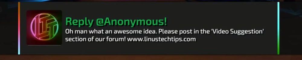 Reply @Anonymous! Linus Media Group. :)