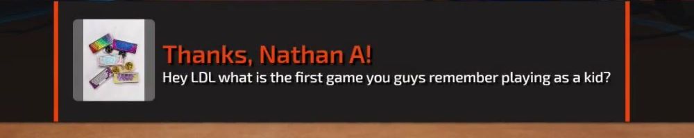 Thanks, Nathan A! Hey LDL what is the first game you guys remember playing as a kid?